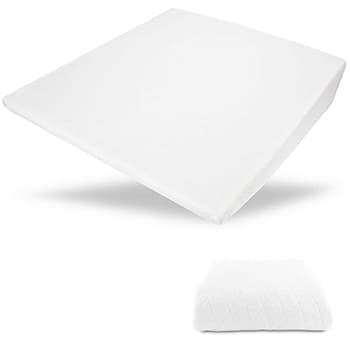 My personal favorite wedge pillow is the InteVision Foam Bed Wedge Pillow. This pillow is 24 by 28 by 7.5 and is designed for therapeutic use. The thick memory foam is perfect for joint support and retains shape well all night.