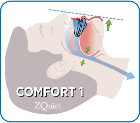 Tired of suffering from snoring (or living with a snorer) and ready to make a change in sleep lifestyle? ZQuiet was designed by a dentist designed MAD aka Mandibular Advancement Device. This type of anti-snoring mouthpiece works to help with tongue obstruction and pushing forward the lower jaw. The forward advancement of the lower jaw prevents the tongue from blocking your breating and starting the snoring cycle.